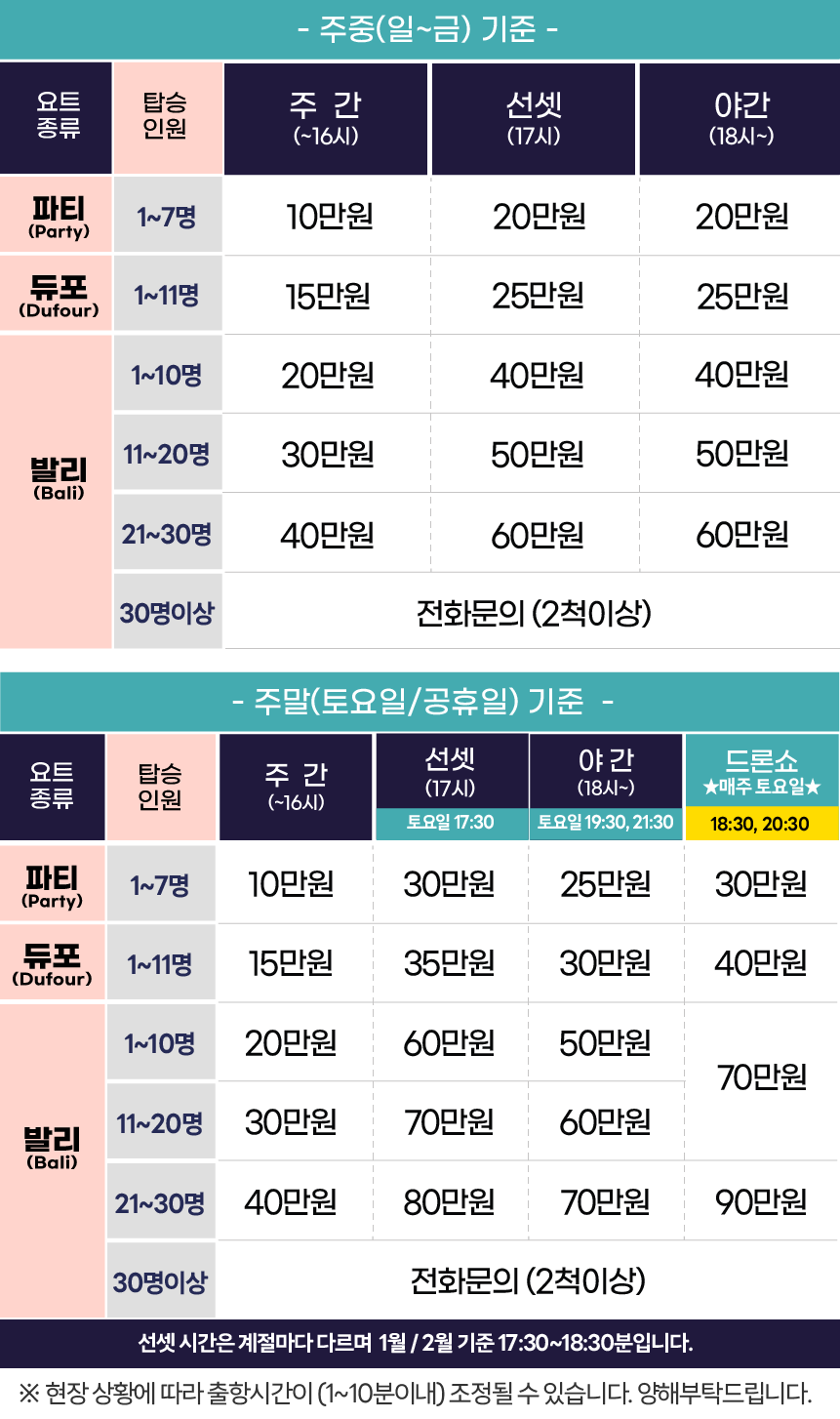 기상 및 요트 상황에 따라 변경될 수 있습니다 ★